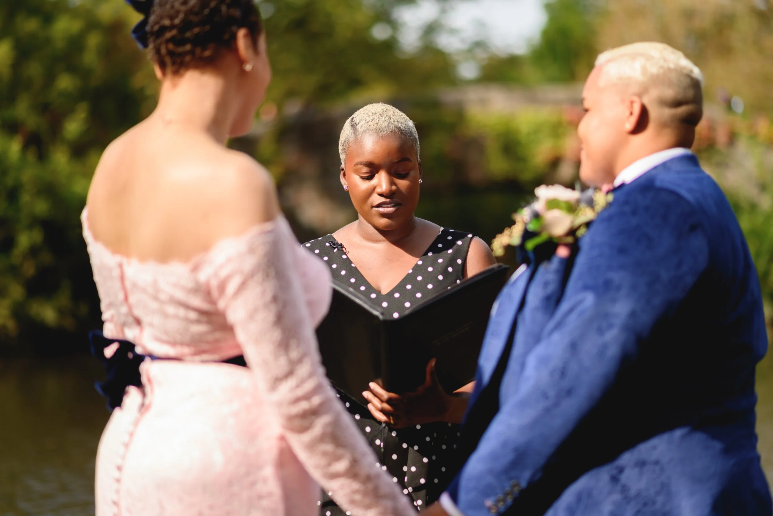 We highly recommend her; sheโs a wonderful officiant and even better person.โ